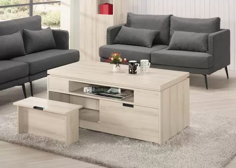達爾維4尺升降大茶几 首頁 產品型錄 客廳TV櫃+茶几 多功能升降茶几 達爾維4尺升降大茶几 產品型號 : 1448-1 線上型錄 滿萬折千 價格 : 11600 規格選項 : 達爾維4尺升降大茶几 數量 : 加入詢價車 達爾維4尺升降大茶几 價格 : $ 11600 寬120 深60 高52~69 公分 材質:低甲醛防蛀木心板 塗裝:PU耐磨耐水塗裝 抽屜:採用台灣製造鋼珠滑軌 手把:鋁合金烤漆手把 木紋:專利技術浮雕壓紋,觸感猶如實木 桌面:使用油壓升降五金 (附輔助椅*2張)