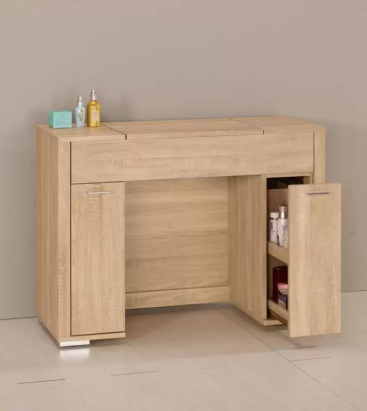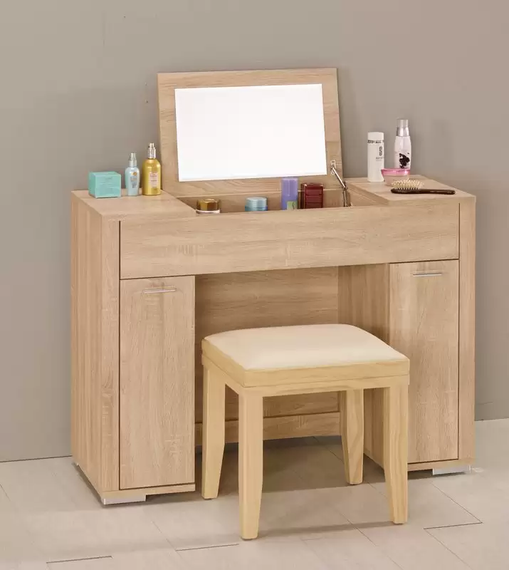 格瑞斯3.3尺掀鏡式化妝台含椅 首頁 產品型錄 床組+衣櫃 格瑞斯床組 格瑞斯3.3尺掀鏡式化妝台含椅 產品型號 : 2285-3 線上型錄 滿萬折千 價格 : 8600 規格選項 : 格瑞斯3.3尺掀鏡式化妝台含椅 數量 : 加入詢價車 格瑞斯3.3尺掀鏡式化妝台含椅 價格 : $ 8600 寬100 深40 高76 公分 材質:低甲醛防蛀木心板 塗裝:PU耐磨耐水塗裝 抽屜:鋼珠滑軌 背板:美背處理 後鈕:油壓緩衝後鈕 木紋:專利技術浮雕壓紋,觸感猶如實木 (附活動隔板*1)