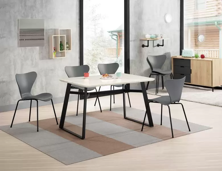 古瑟里4尺原石餐桌 首頁 產品型錄 餐桌+餐椅 極簡金屬餐桌 古瑟里4尺原石餐桌 產品型號 : 1803-4 線上型錄 滿萬折千 價格 : 7000 規格選項 : 古瑟里4尺原石餐桌 數量 : 加入詢價車 古瑟里4尺原石餐桌 價格 : $ 7000 寬120 深80 高75 公分 石面:採用天然原石另加工高硬度化學材料,增加石材壽命 腳架:黑砂亞光粉體烤漆五金架 圖片餐椅https://www.chunglong.com/product/2223