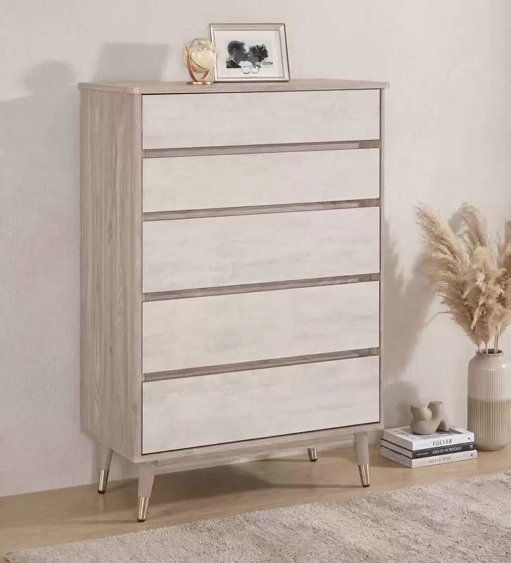 納維斯2.7尺五斗櫃 首頁 產品型錄 床組+衣櫃 維納斯床組 納維斯2.7尺五斗櫃 產品型號 : 2265-6 線上型錄 滿萬折千 價格 : 9600 規格選項 : 納維斯2.7尺五斗櫃 數量 : 加入詢價車 納維斯2.7尺五斗櫃 價格 : $ 9600 寬80 深40 高120 公分 材質:正面.側板.桌面採用符合國際標準低甲醛防蛀木心板 塗裝:採用PU耐磨耐水塗裝 表面:專利技術耐磨浮雕木紋,觸感猶如實木 抽屜:採用MIT鋼珠滑軌 腳架:實木噴漆+白銀鐵包覆處理 背板:美背處理