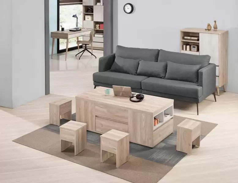 納維斯4X4尺升降大茶几 首頁 產品型錄 客廳TV櫃+茶几 多功能升降茶几 納維斯4X4尺升降大茶几 產品型號 : 1447-1 線上型錄 滿萬折千 價格 : 13400 規格選項 : 納維斯4X4尺升降大茶几 數量 : 加入詢價車 納維斯4X4尺升降大茶几 價格 : $ 13400 寬121 深60 高48~64 公分 材質:正面.側板.桌面採用符合國際標準低甲醛防蛀木心板 塗裝:採用PU耐磨耐水塗裝 表面:專利技術耐磨浮雕木紋,觸感猶如實木 抽屜:採用MIT鋼珠滑軌 後鈕:採用油壓緩衝五金 (雙邊造型.單邊使用) (附輔助椅*4張)
