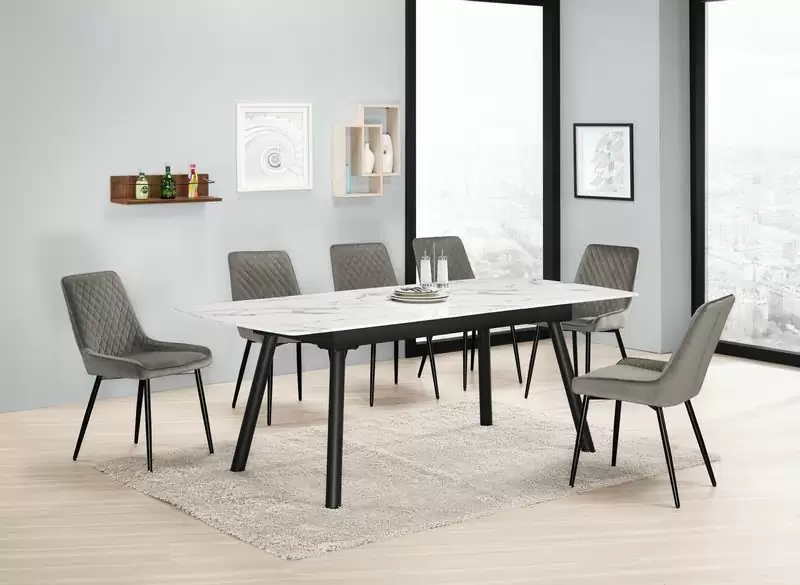 萊斯里6.6尺多功能玻璃伸縮餐桌 首頁 產品型錄 餐桌+餐椅 圓形餐桌.功能收合餐桌 萊斯里6.6尺多功能玻璃伸縮餐桌 產品型號 : 1793-1 線上型錄 滿萬折千 價格 : 11100 規格選項 : 萊斯里6.6尺多功能玻璃伸縮餐桌 數量 : 加入詢價車 萊斯里6.6尺多功能玻璃伸縮餐桌 價格 : $ 11600 寬161~201 深90 高75 公分 腳架:防鏽鐵管噴漆處理 桌面:採用高科技石紋鋼化10mm玻璃 圖片餐椅https://www.chunglong.com/product/2215
