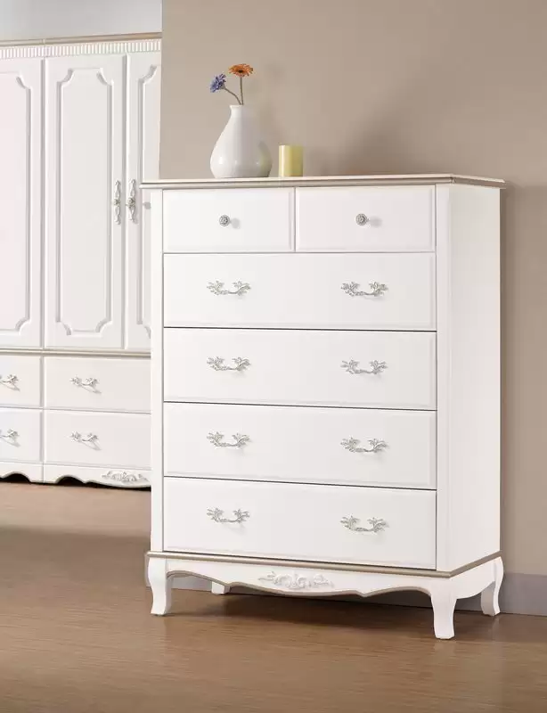 諾維雅3尺五斗櫃 首頁 產品型錄 床組+衣櫃 諾維雅床組+組合衣櫥 諾維雅3尺五斗櫃 產品型號 : 2293-7 線上型錄 滿萬折千 價格 : 13900 規格選項 : 諾維雅3尺五斗櫃 數量 : 加入詢價車 諾維雅3尺五斗櫃 價格 : $ 13900 寬92 深45 高124 公分 正面:實木+18mm MDF全包式材質三層噴漆 材質:低甲醛防蛀木心板 桌面:25mm MDF全包式材質三層噴漆 塗裝:採用優利坦(環保漆)經紅外線處理耐磨耐防黃烤漆塗裝 抽屜:採用鋼珠滑軌,底板5mm夾板 背板:美背處理 手把:古典雙色烤漆手把