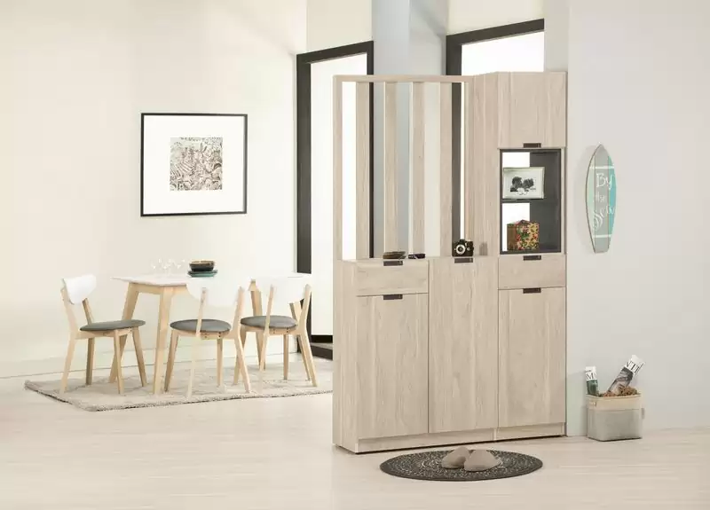 達里歐4尺玄關屏風組合鞋櫃(A型) 首頁 產品型錄 屏風櫃 及 鞋櫃 達里歐玄關屏風組合鞋櫃 達里歐4尺玄關屏風組合鞋櫃(A型) 產品型號 : 1514-2 線上型錄 滿萬折千 價格 : 17700 規格選項 : 達里歐4尺玄關屏風組合鞋櫃(A型) 數量 : 加入詢價車 達里歐4尺玄關屏風組合鞋櫃(A型) 價格 : $ 17700 寬121 深38 高196 公分 材質:採用符合國際標準低甲醛防蛀木心板 塗裝:採用PU耐磨耐水塗裝 表面:專利技術耐磨浮雕木紋,觸感猶如實木 抽屜:採用三節式鋼珠滑軌 後鈕:採用油壓緩衝五金 手把:鋁合金烤漆手把 背板:美背處理 (內附活動隔板5片) (屏風可左右調換)