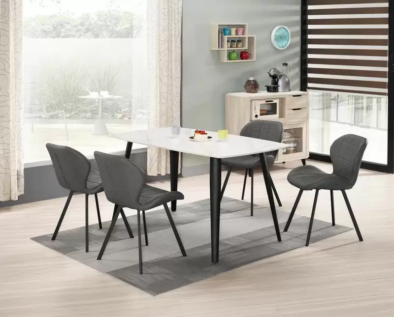 捷妮4.6尺岩板餐桌 首頁 產品型錄 餐桌+餐椅 極簡金屬餐桌 捷妮4.6尺岩板餐桌 產品型號 : 1800-1 線上型錄 滿萬折千 價格 : 5500 規格選項 : 捷妮4.6尺岩板餐桌 數量 : 加入詢價車 捷妮4.6尺岩板餐桌 價格 : $ 5500 寬140 深80 高76 公分 腳架:防鏽鐵管烤漆處理 桌面:採用高硬度天然原石經高壓機加工高溫燒製而成,耐磨耐高溫(12mm岩板) 圖片餐椅https://www.chunglong.com/product/1490