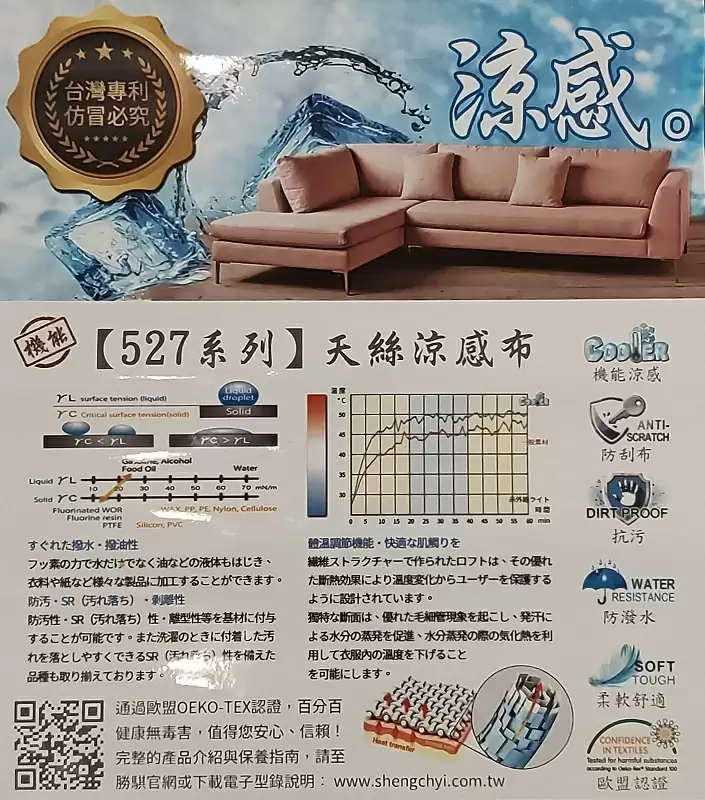 面料使用天絲涼感纖維有效降低體感溫度並有歐盟OEKO-TEX無毒認證