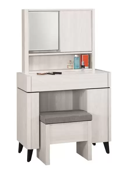 艾德嘉2.7尺化妝台含椅 首頁 產品型錄 床組+衣櫃 艾德嘉床組 艾德嘉2.7尺化妝台含椅 產品型號 : 1081-5 線上型錄 滿萬折千 價格 : 10300 規格選項 : 艾德嘉2.7尺化妝台含椅 數量 : 加入詢價車 艾德嘉2.7尺化妝台含椅 定價 : $ 10300 寬80 深40 高136 公分 材質:採用符合國際標準低甲醛防蛀木心板 塗裝:採用優麗坦耐磨處理 表面:專利技術耐磨浮雕木紋,觸感猶如實木 側板:加厚3.4cm木心板斜邊設計 面板:採用仿大理石紋E0美耐皿木心板材質 抽屜:採用鋼珠滑軌 後鈕:採用油壓緩衝五金 腳架:12cm防鏽五金烤漆處理 背板:美背處理 鏡台:門片可左右推內可收納 化妝椅:可掀開置物