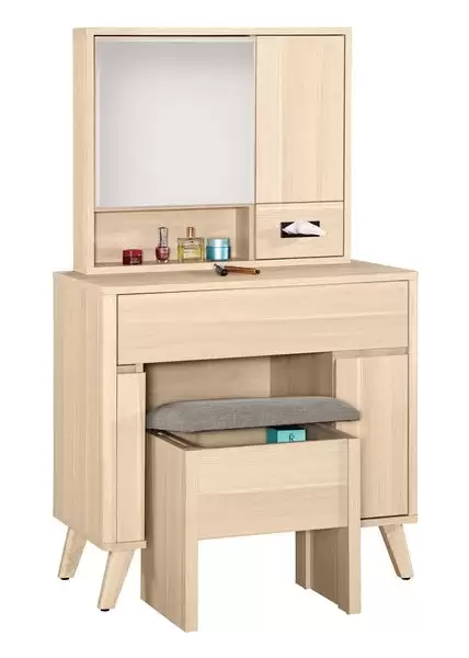 克萊爾2.7尺化妝台含椅 首頁 產品型錄 床組+衣櫃 克萊爾床組 克萊爾2.7尺化妝台含椅 產品型號 : 1225-3 線上型錄 滿萬折千 價格 : 10100 規格選項 : 克萊爾2.7尺化妝台(全組) 數量 : 加入詢價車 克萊爾2.7尺化妝台含椅 價格 : $ 10100 寬80 深40 高136 公分 材質:採用符合國際標準低甲醛防蛀木心板 塗裝:採用PU耐磨耐水塗裝 表面:專利技術耐磨浮雕木紋,觸感猶如實木 抽屜:採用鋼珠滑軌 後鈕:油壓緩衝西德鉸鏈 腳架:實木貼耐磨木紋皮 背板:美背處理 鏡台:開門式門片內可收納 化妝椅:可掀開置物