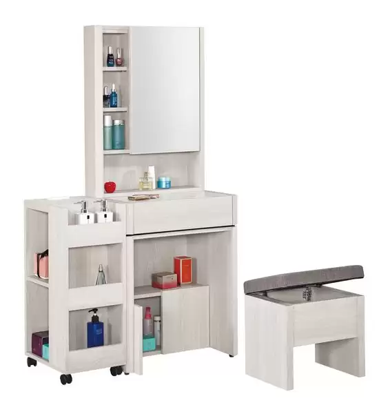 艾德嘉3尺多功能化妝台含椅 首頁 產品型錄 床組+衣櫃 艾德嘉床組 艾德嘉3尺多功能化妝台含椅 產品型號 : 1081-3 線上型錄 滿萬折千 價格 : 11700 規格選項 : 艾德嘉3尺多功能化妝台含椅 數量 : 加入詢價車 艾德嘉3尺多功能化妝台含椅 價格: $ 11700 寬90 深40 高155 公分 材質:採用符合國際標準低甲醛防蛀木心板 塗裝:採用優麗坦耐磨處理 表面:專利技術耐磨浮雕木紋,觸感猶如實木 側板:加厚3.4cm木心板斜邊設計 面板:採用仿大理石紋E0美耐皿木心板材質 抽屜:採用鋼珠滑軌 後鈕:採用油壓緩衝五金 背板:美背處理 鏡台:開門式門片內可收納 化妝椅:可掀開置物