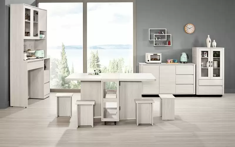 華爾斯仿石面多功能折合餐桌+4椅 首頁 產品型錄 餐桌+餐椅 圓形餐桌.功能收合餐桌 華爾斯仿石面多功能折合餐桌+4椅 產品型號 : 1689-4 線上型錄 滿萬折千 價格 : 7900 規格選項 : 華爾斯仿石面多功能折合餐桌+4椅 數量 : 加入詢價車 華爾斯仿石面多功能折合餐桌+4椅 價格 : $ 7900 (展開)寬149 深76 高75 公分 (收合)寬37 深76 高75 公分 材質:採用符合國際標準低甲醛防蛀木心板 塗裝:採用PU耐磨耐水塗裝 表面:專利技術耐磨浮雕木紋,觸感猶如實木 面板:採用仿大理石紋E0美耐皿材質,具有耐高溫.耐刮磨特性 (附輔助椅*4張) 收納櫃https://www.chunglong.com/product/2801