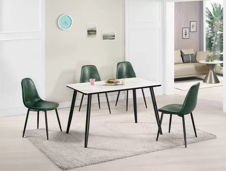辛恩4.3尺岩板餐桌 首頁 產品型錄 餐桌+餐椅 極簡金屬餐桌 辛恩4.3尺岩板餐桌 產品型號 : 1800-2 線上型錄 滿萬折千 價格 : 3800 規格選項 : 辛恩4.3尺岩板餐桌 數量 : 加入詢價車 辛恩4.3尺岩板餐桌 價格 : $ 3800 寬130 深80 高76 公分 腳架:防鏽鐵管噴漆處理 桌面:採用高硬度天然原石經高壓機加工高溫燒製而成,耐磨耐高溫(9mm岩板) 圖片餐椅https://www.chunglong.com/product/1785