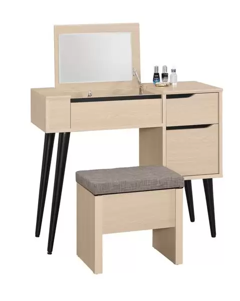 朵利斯3尺掀鏡化妝台含椅 首頁 產品型錄 床組+衣櫃 朵利斯床組 朵利斯3尺掀鏡化妝台含椅 產品型號 : 1215-4 線上型錄 滿萬折千 價格 : 8800 規格選項 : 朵利斯3尺掀鏡化妝台 數量 : 加入詢價車 朵利斯3尺掀鏡化妝台含椅 價格 : $ 8800 寬90 深40 高76 公分 材質:採用符合國際標準低甲醛防蛀木心板 塗裝:採用PU耐磨耐水塗裝 抽屜:採用鋼珠滑軌 後鈕:採用油壓緩衝五金 腳架:實木 背板:美背處理 化妝台:椅子可掀開置物