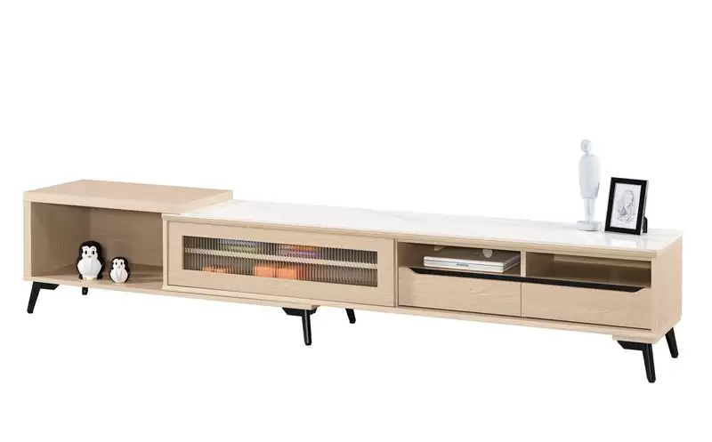 朵利斯6.1尺岩板伸縮長櫃 首頁 產品型錄 客廳TV櫃+茶几 淺色茶几+電視櫃 電視櫃+展示櫃 朵利斯6.1尺岩板伸縮長櫃 產品型號 : 1482-4 線上型錄 滿萬折千 價格 : 10700 規格選項 : 朵利斯6.1尺岩板伸縮長櫃 數量 : 加入詢價車 朵利斯6.1尺岩板伸縮長櫃 價格 : $ 10700 寬184~240 深40 高48 公分 材質:採用符合國際標準低甲醛防蛀木心板 側板:採用木心板導弧形造型 表面:專利技術耐磨浮雕木紋,觸感猶如實木 門片:5mm強化長虹玻璃 抽屜:採用三節式鋼珠滑軌 腳架: 12cm黑砂亞光粉體烤漆五金架 背板:美背處理,有電線管理孔洞 桌面:採用高硬度天然原石經高壓機加工高溫燒製而成,耐磨耐高溫(12mm岩板)
