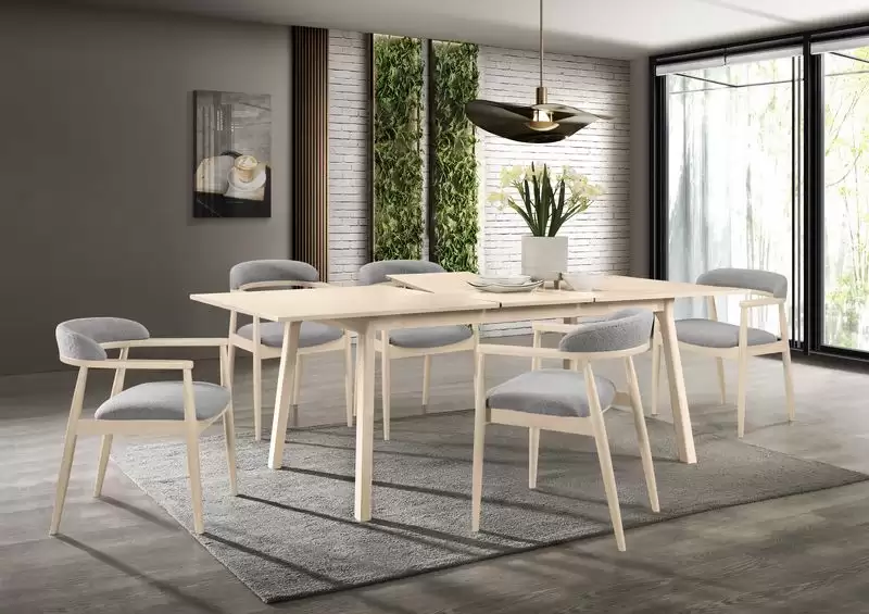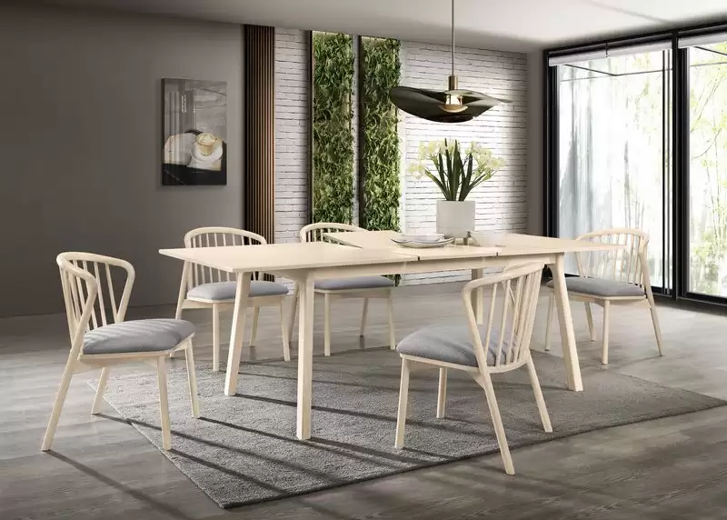 羅拉7.5尺伸縮蝴蝶餐桌(洗白色) 首頁 產品型錄 餐桌+餐椅 圓形餐桌.功能收合餐桌 羅拉7.5尺伸縮蝴蝶餐桌(洗白色) 產品型號 : 1738-1 線上型錄 滿萬折千 價格 : 13400 規格選項 : 羅拉7.5尺伸縮蝴蝶餐桌(洗白色) 數量 : 加入詢價車 羅拉7.5尺伸縮蝴蝶餐桌(洗白色) 價格 : $ 13400 寬180~226 深90 高76 公分 桌面:高級MDF全包式材質+實木皮 桌腳:橡膠木 塗裝:採用優麗坦耐磨耐水塗裝 圖一餐椅連結https://www.chunglong.com/product/3109 圖二餐椅連結https://www.chunglong.com/product/3108