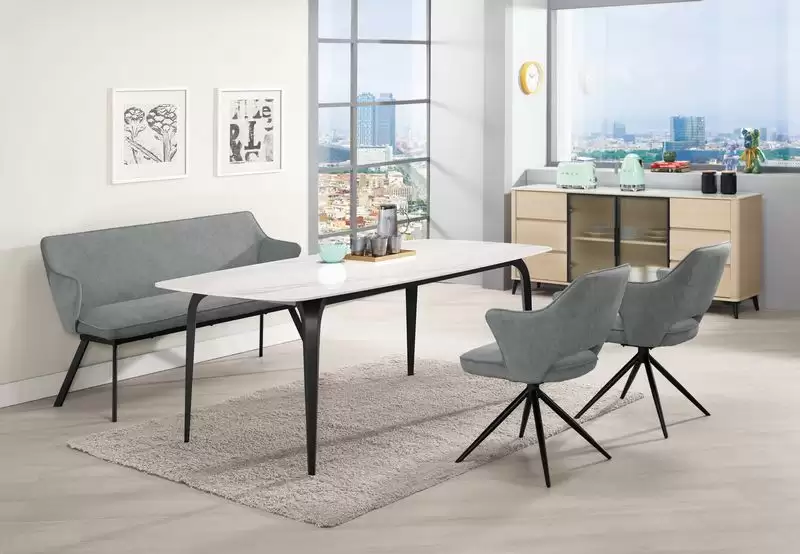 桌面:採用高硬度天然原石經高壓機加工高溫燒製而成,耐磨耐高溫(12mm岩板)桌腳:黑砂粉體烤漆五金架