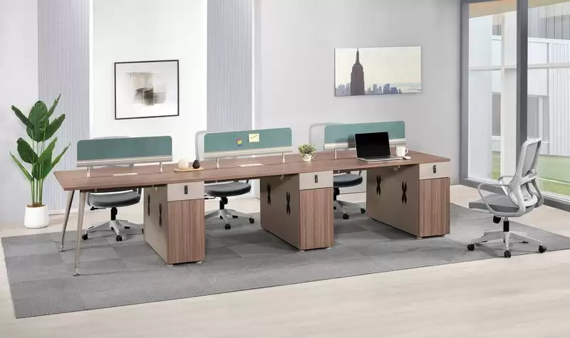 摩里斯六人辦公桌 首頁 產品型錄 辦公家具 雙面辦公桌 摩里斯六人辦公桌 產品型號 : 1574-1 線上型錄 滿萬折千 價格 : 27700 規格選項 : 摩里斯六人辦公桌 數量 : 加入詢價車 摩里斯六人辦公桌 價格 : $ 27700 寬360 深120 高109 公分 材質:E1三聚氰胺板+琉璃木紋皮 塗裝:採用優麗坦耐磨耐水塗裝 抽屜:採用三節式鋼珠滑軌附密碼鎖 後鈕:採用油壓緩衝五金 桌腳:防鏽鐵管噴漆處理 (門抽雙邊造型.雙邊使用)