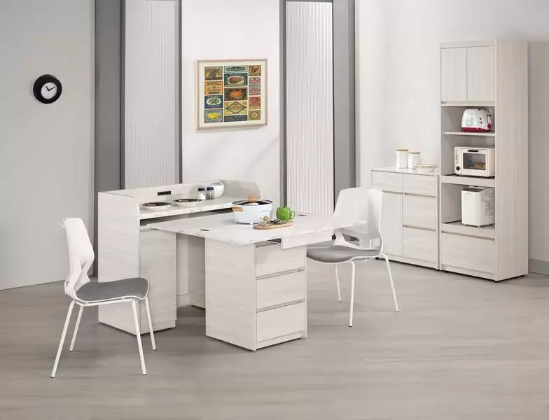 克萊格3.5尺仿石面活動式餐桌櫃 首頁 產品型錄 中島桌櫃&餐櫃 餐櫃 克萊格3.5尺仿石面活動式餐桌櫃 產品型號 : 2842-1 線上型錄 滿萬折千 價格 : 16800 規格選項 : 克萊格3.5尺仿石面活動式餐桌櫃 數量 : 加入詢價車 克萊格3.5尺仿石面活動式餐桌櫃 價格 : $ 16800 餐櫃 : 寬105 深52 高92 公分 餐桌 : 寬100 深100 高75 公分 材質:採用符合國際標準低甲醛防蛀木心板 塗裝:採用PU耐磨耐水塗裝 表面:專利技術耐磨浮雕木紋,觸感猶如實木 面板:採用仿大理石紋美耐皿木心板材質,具有耐高溫.耐刮磨特性 抽屜:採用三節式鋼珠滑軌 背板:美背處理 後鈕:採用油壓緩衝五金 (附插座) (內附活動隔板2片)