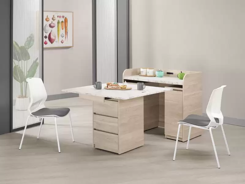 丹尼爾3.5尺仿石面活動式餐桌櫃 首頁 產品型錄 中島桌櫃&餐櫃 餐櫃 丹尼爾3.5尺仿石面活動式餐桌櫃 產品型號 : 2870-1 線上型錄 滿萬折千 價格 : 16800 規格選項 : 丹尼爾3.5尺仿石面活動式餐桌櫃 數量 : 加入詢價車 丹尼爾3.5尺仿石面活動式餐桌櫃 價格 : $ 16800 餐櫃 : 寬105 深52 高92 公分 餐桌 : 寬100 深100 高75 公分 材質:採用符合國際標準低甲醛防蛀木心板 塗裝:採用PU耐磨耐水塗裝 表面:專利技術耐磨浮雕木紋,觸感猶如實木 面板:採用仿大理石紋美耐皿木心板材質,具有耐高溫.耐刮磨特性 抽屜:採用三節式鋼珠滑軌 背板:美背處理 後鈕:採用油壓緩衝五金
