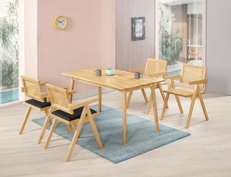 賽門4.6尺餐桌 首頁 產品型錄 餐桌+餐椅 淺色餐桌 賽門4.6尺餐桌 產品型號 : 1762-1 線上型錄 滿萬折千 價格 : 3900 規格選項 : 賽門4.6尺餐桌 數量 : 加入詢價車 賽門4.6尺餐桌 價格 : $ 3900 寬139 深80 高74 公分 材質:橡膠木實木 塗裝:採用優麗坦耐磨耐水塗裝 圖一餐椅連結 https://www.chunglong.com/product/3505 https://www.chunglong.com/product/3504