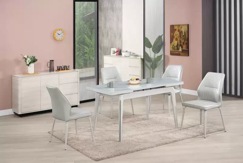 山姆4.6尺多功能玻璃伸縮餐桌 首頁 產品型錄 餐桌+餐椅 圓形餐桌.功能收合餐桌 山姆4.6尺多功能玻璃伸縮餐桌 產品型號 : 1812-1 線上型錄 滿萬折千 價格 : 6700 規格選項 : 山姆4.6尺多功能玻璃伸縮餐桌 數量 : 加入詢價車 山姆4.6尺多功能玻璃伸縮餐桌 價格 : $ 6700 收合 : 寬111 深75 高71 公分 拉開 : 寬141 深75 高71 公分 桌面:岩玻 : 仿岩燒石強化石紋玻璃(5mm石紋玻璃) 桌腳:橡膠木實木 塗裝:採用優麗坦耐磨耐水塗裝 (中間跳板) 圖片餐椅https://www.chunglong.com/product/3516