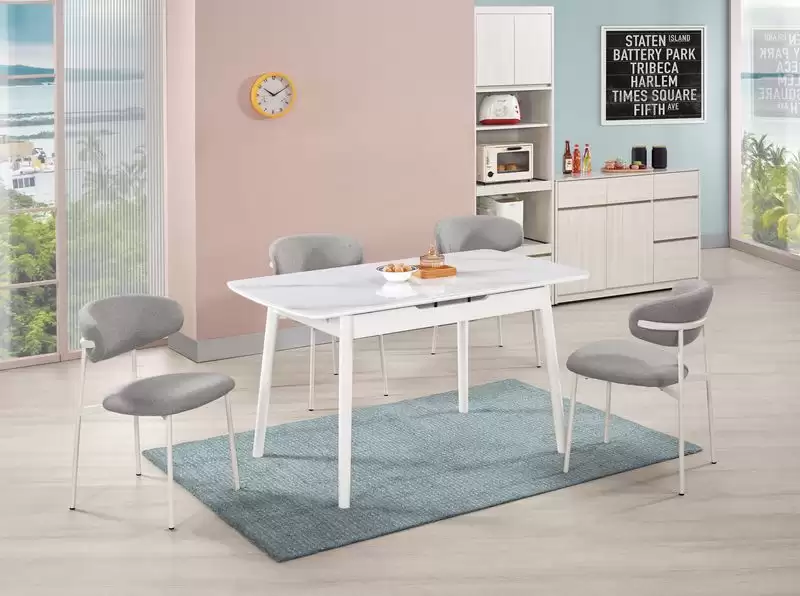 霍利斯4.6尺多功能玻璃伸縮餐桌 首頁 產品型錄 餐桌+餐椅 圓形餐桌.功能收合餐桌 霍利斯4.6尺多功能玻璃伸縮餐桌 產品型號 : 1812-2 線上型錄 滿萬折千 價格 : 5400 規格選項 : 霍利斯4.6尺多功能玻璃伸縮餐桌 數量 : 加入詢價車 霍利斯4.6尺多功能玻璃伸縮餐桌 價格 : $ 5400 收合 : 寬112 深76 高76 公分 拉開 : 寬140 深76 高76 公分 桌面:岩玻 : 仿岩燒石強化石紋玻璃(5mm強化石紋玻璃) 桌腳:實木 塗裝:採用優麗坦耐磨耐水塗裝 (中間跳板) 圖片餐椅https://www.chunglong.com/product/3515