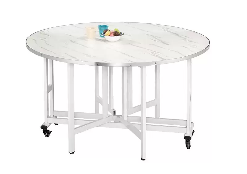 依西多4.5尺圓折合桌 首頁 產品型錄 餐桌+餐椅 圓形餐桌.功能收合餐桌 依西多4.5尺圓折合桌 產品型號 : 1839-1 線上型錄 滿萬折千 價格 : 4400 規格選項 : 依西多4.5尺圓折合桌 數量 : 加入詢價車 依西多4.5尺圓折合桌 價格 : $ 4400 收合 : 寬136 深29 高76 公分 拉開 : 直徑136 高76 公分 桌面:採用刨花板.防滑.防水 桌腳:防鏽鐵管噴漆處理+萬向煞車輪
