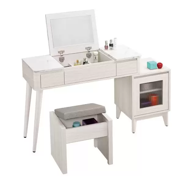丹尼斯3.3尺伸縮掀鏡化妝台 首頁 產品型錄 床組+衣櫃 丹尼斯床組 丹尼斯3.3尺伸縮掀鏡化妝台 產品型號 : 1019-3 線上型錄 滿萬折千 價格 : 13300 規格選項 : 丹尼斯3.3尺伸縮掀鏡化妝台 數量 : 加入詢價車 丹尼斯3.3尺伸縮掀鏡化妝台 價格 : $ 13300 寬100~130 深40 高76 公分 材質:採用符合國際標準低甲醛防蛀木心板 塗裝:採用PU耐磨耐水塗裝 表面:專利技術耐磨浮雕木紋,觸感猶如實木 側板:採用木心板導弧形造型 抽屜:採用三節式鋼珠滑軌 背板:美背處理 後鈕:採用油壓緩衝五金 腳架:11cm實木腳 化妝台:開門櫃可左右擺放 化妝椅:可掀開置物 (附活動隔板1片)