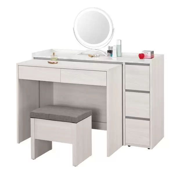 希斯洛4尺伸縮化妝台含椅 首頁 產品型錄 床組+衣櫃 希斯洛床組 希斯洛4尺伸縮化妝台含椅 產品型號 : 1035-2 線上型錄 滿萬折千 價格 : 11000 規格選項 : 希斯洛4尺伸縮化妝台含椅 數量 : 加入詢價車 希斯洛4尺伸縮化妝台含椅 價格 : $ 11000 寬120 深40~71 高82 公分 材質:採用符合國際標準低甲醛防蛀木心板 塗裝:採用PU耐磨耐水塗裝 抽屜:採用鋼珠滑軌,底板採用5mm夾板 背板:美背處理 化妝台:鏡框採用LED觸控式三段亮燈模式 .防鏽鐵件噴漆 化妝椅:可掀開置物