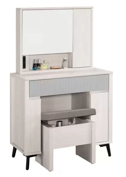 喬倫斯2.7尺化妝台含椅 首頁 產品型錄 床組+衣櫃 喬倫斯床組 喬倫斯2.7尺化妝台含椅 產品型號 : 1041-1 線上型錄 滿萬折千 價格 : 11200 規格選項 : 喬倫斯2.7尺化妝台含椅 數量 : 加入詢價車 喬倫斯2.7尺化妝台含椅 價格 : $ 11200 寬80 深40 高134 公分 材質:採用符合國際標準低甲醛防蛀木心板 塗裝:採用PU耐磨耐水塗裝 抽屜:採用三節式鋼珠滑軌,1.8mmMDF材質CNC加工再塗包覆.美觀耐用 背板:美背處理 後鈕:採用油壓緩衝五金 腳架:12cm防鏽鐵管烤漆處理 化妝台:開門式門片內可收納,附110V插座 化妝椅:可掀開置物 (附活動隔板1大1小)