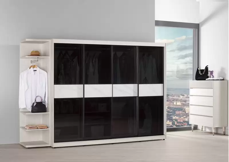 蘿克斯8尺鋁框拉門衣櫥(黑玻璃)