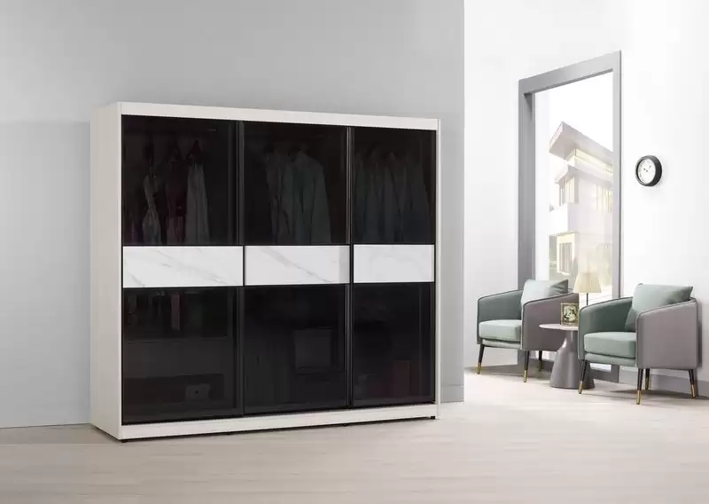 蘿克斯7尺被櫥式鋁框拉門衣櫥(黑玻璃)