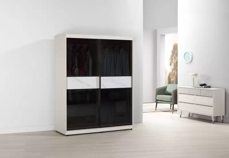 蘿克斯5尺被櫥式鋁框拉門衣櫥(黑玻璃)