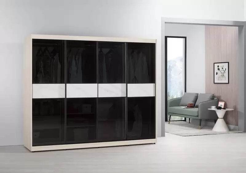 里斯特8尺鋁框拉門衣櫥(黑玻璃)