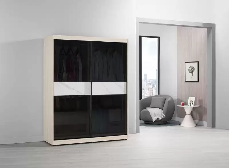 里斯特5尺鋁框拉門衣櫥(黑玻璃)