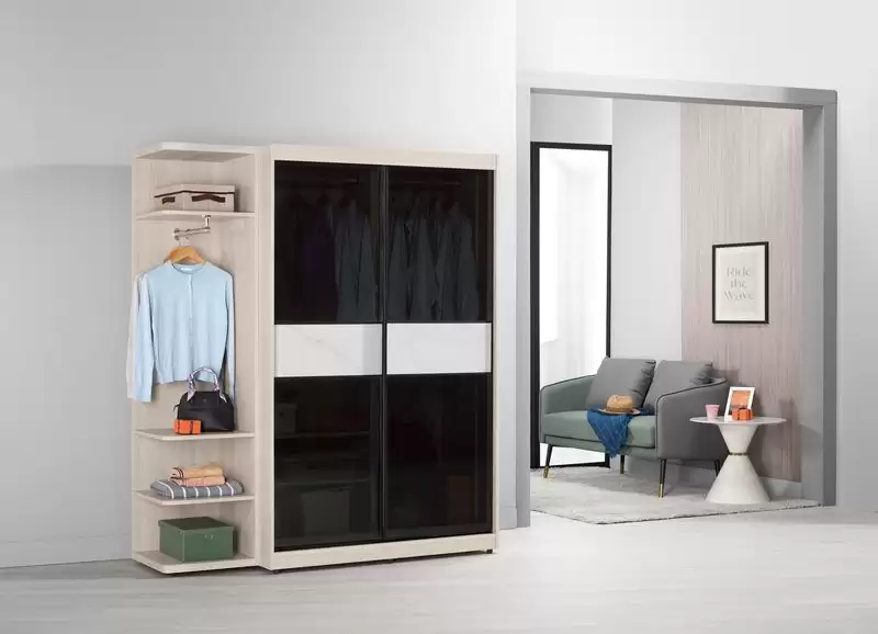 里斯特4尺鋁框拉門衣櫥(黑玻璃)