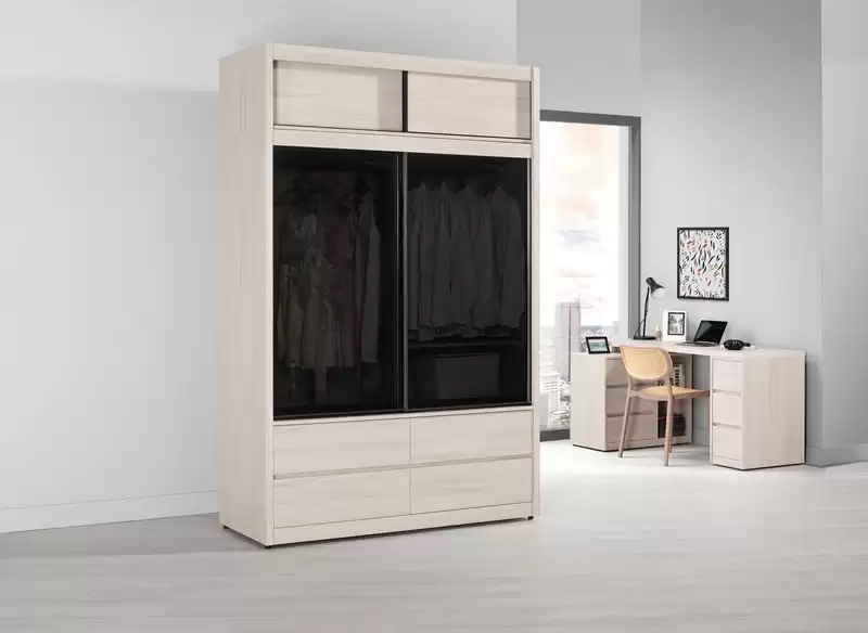 里斯特5尺鋁框拉門衣櫥(黑玻璃)