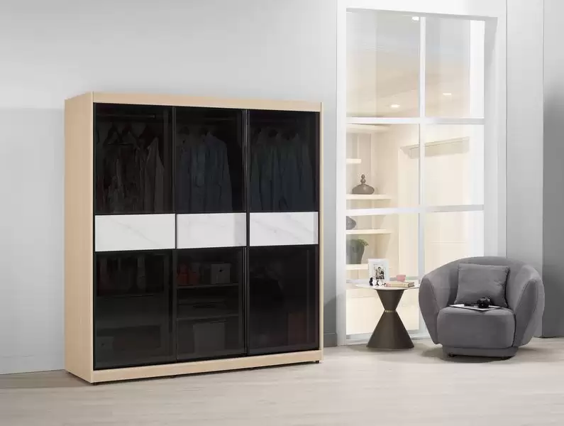 艾維斯6尺鋁框拉門衣櫥(黑玻璃)