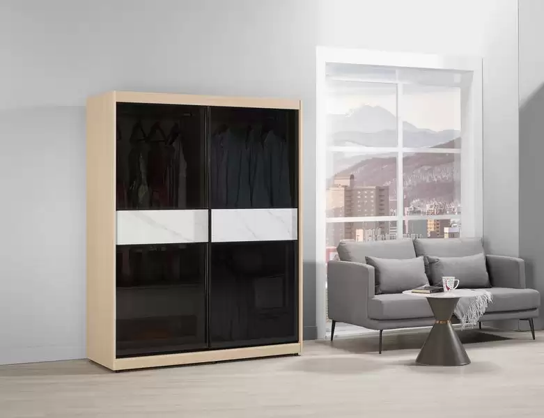 艾維斯5尺鋁框拉門衣櫥(黑玻璃)