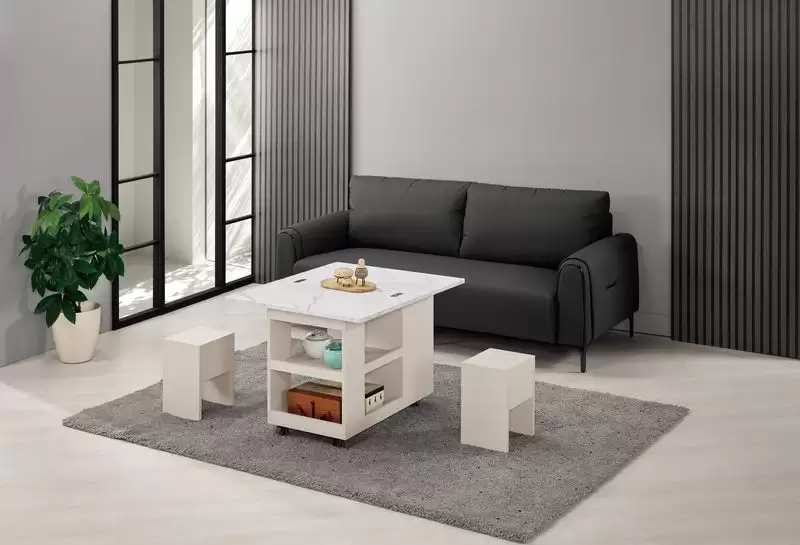 佩洛斯1.3尺仿石面活動茶几 首頁 產品型錄 客廳TV櫃+茶几 小客廳茶几組 佩洛斯1.3尺仿石面活動茶几 產品型號 : 2404-2 線上型錄 滿萬折千 價格 : 7700 規格選項 : 佩洛斯1.3尺仿石面活動茶几 數量 : 加入詢價車 佩洛斯1.3尺仿石面活動茶几 價格 : $ 7700 (收合)寬40 深74 高62 公分 (展開)寬80 深74 高60 公分 材質:採用台灣製造A級環保木心板 塗裝:採用PU耐磨耐水塗裝 表面:採用PVC壓皮革紋 面板:採用仿大理石紋美耐皿木心板材質,具有耐高溫.耐刮磨特性 (附輔助椅*2張)