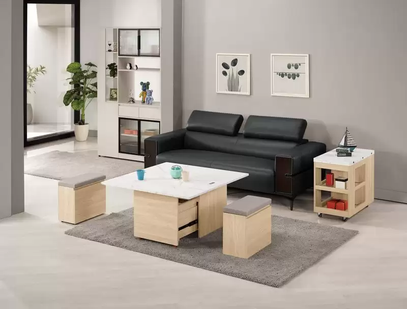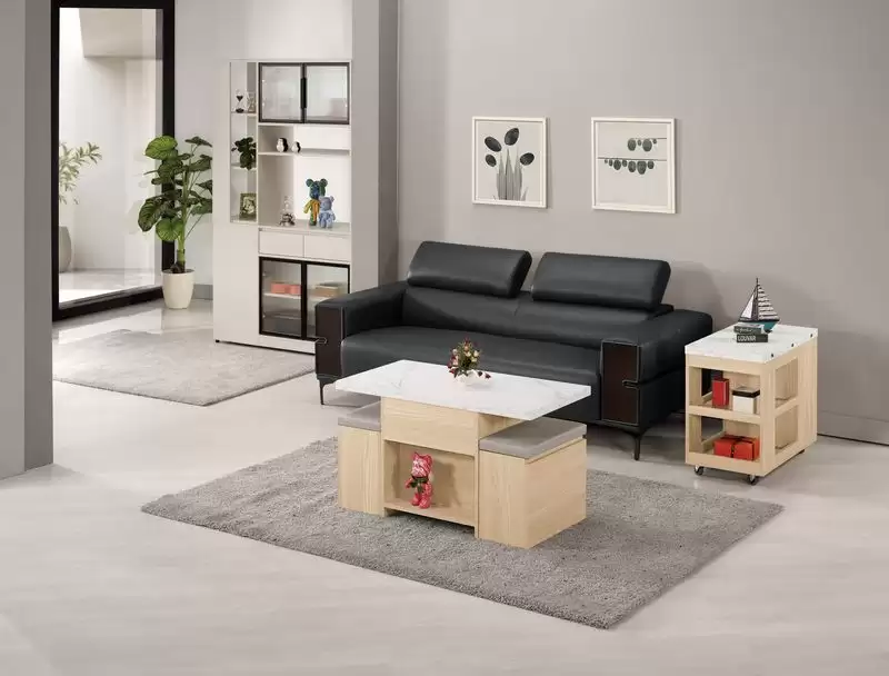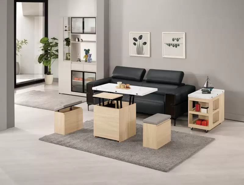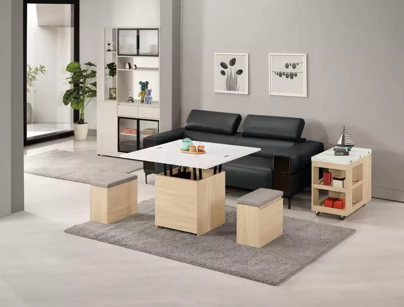 艾瑞爾3.3尺仿石面升降大茶几 首頁 產品型錄 客廳TV櫃+茶几 多功能升降茶几 艾瑞爾3.3尺仿石面升降大茶几 產品型號 : 2414-1 線上型錄 滿萬折千 價格 : 12900 規格選項 : 艾瑞爾3.3尺仿石面升降大茶几 數量 : 加入詢價車 艾瑞爾3.3尺仿石面升降大茶几 價格 : $ 12900 (收合)寬100 深52 高57 公分 (展開)寬100 深104 高74 公分 材質:採用台灣製造A級環保木心板 塗裝:採用PU耐磨耐水塗裝 表面:採用PVC壓皮革紋 面板:採用仿大理石紋美耐皿木心板材質,具有耐高溫.耐刮磨特性 抽屜:採用三節式鋼珠滑軌 手把:斜邊無把手設計 椅墊:採用人工乳膠皮革(貓抓皮)(不可拆洗) (附輔助椅*2張,可掀開收納)