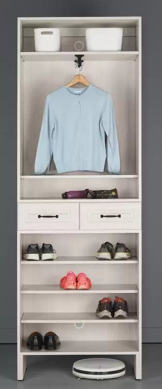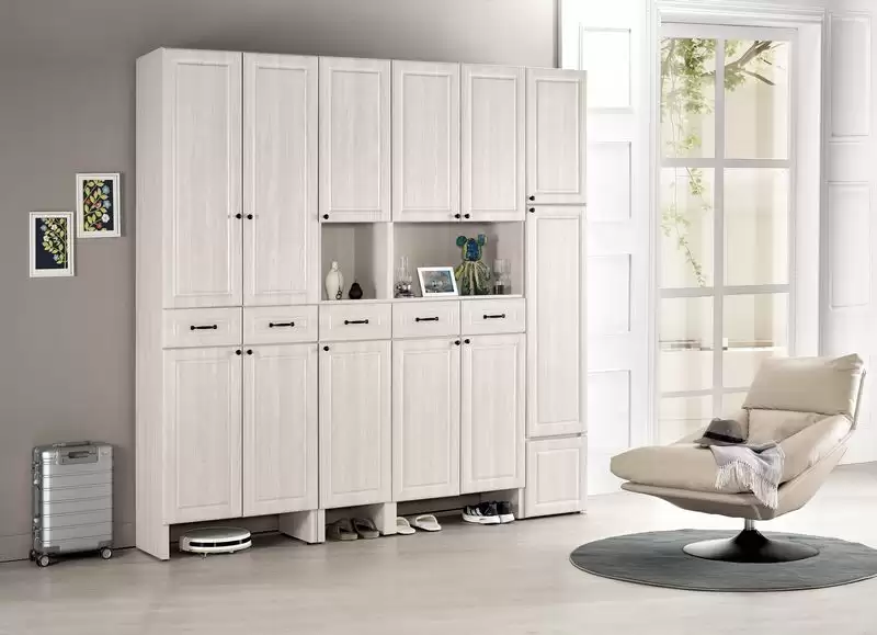 克里斯2.7尺二抽玄關鞋櫃 首頁 產品型錄 屏風櫃 及 鞋櫃 克里斯玄關組合鞋櫃 克里斯2.7尺二抽玄關鞋櫃 產品型號 : 2512-2 線上型錄 滿萬折千 價格 : 16500 規格選項 : 克里斯2.7尺二抽玄關鞋櫃 數量 : 加入詢價車 克里斯2.7尺二抽玄關鞋櫃 價格 : $ 16500 寬80 深40 高236 公分 材質:採用台灣製造A級環保木心板 表面:正面採用紐西蘭18mm高密度MDF.CNC雕刻.經由PVC熱壓成型 塗裝:採用PU耐磨耐水塗裝 抽屜:採用三節式鋼珠滑軌 背板:美背處理 後鈕:採用油壓緩衝五金 手把:鋁合金烤漆手把 (附伸縮吊衣桿) (下方空間 : 寬73 高17 ) (內附活動隔板5片)