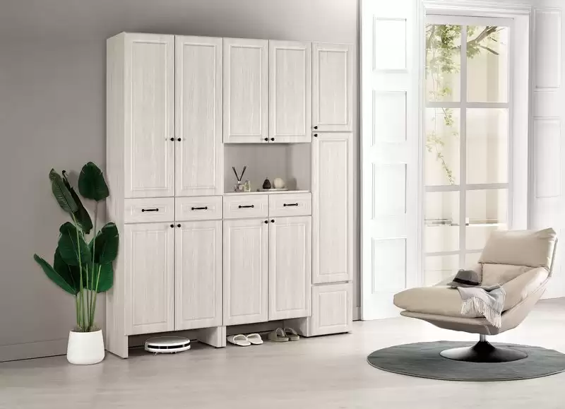 克里斯1.3尺玄關鞋櫃含座椅 首頁 產品型錄 屏風櫃 及 鞋櫃 克里斯玄關組合鞋櫃 克里斯1.3尺玄關鞋櫃含座椅 產品型號 : 2512-4 線上型錄 滿萬折千 規格選項 : 克里斯1.3尺玄關鞋櫃含座椅 數量 : 加入詢價車 克里斯1.3尺玄關鞋櫃含座椅 價格 : $ 12700 寬40 深40 高236 公分 材質:採用台灣製造A級環保木心板 表面:正面採用紐西蘭18mm高密度MDF.CNC雕刻.經由PVC熱壓成型 塗裝:採用PU耐磨耐水塗裝 背板:美背處理 後鈕:採用油壓緩衝五金 手把:鋁合金烤漆手把 (內附活動隔板5片) (附輔助椅1張,可掀開收納)