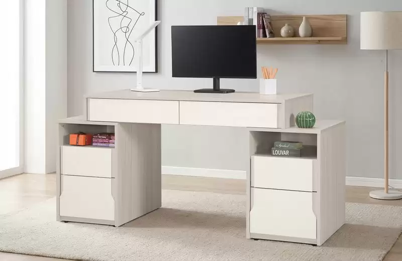 娜迪亞5.3尺書桌 首頁 產品型錄 書桌.書櫃 娜迪亞組合書櫥+多款式娜迪亞書桌 娜迪亞5.3尺書桌 產品型號 : 2728-3 線上型錄 滿萬折千 價格 : 14300 規格選項 : 娜迪亞5.3尺書桌 數量 : 加入詢價車 娜迪亞5.3尺書桌 價格 : $ 14300 寬159 深60 高76 公分 材質:採用符合國際標準低甲醛防蛀木心板 塗裝:採用PU耐磨耐水塗裝 面板:採用美耐皿木心板材質,具有耐高溫.耐刮磨特性 抽屜:採用鋼珠滑軌 背板:美背處理 手把:採用J型封邊技術.美觀.防潮.耐用