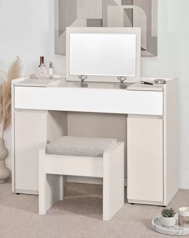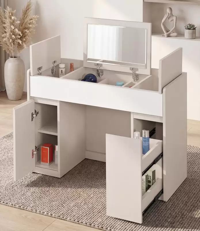 佩洛斯3.3尺掀鏡化妝台含椅 首頁 產品型錄 床組+衣櫃 佩洛斯床組 佩洛斯3.3尺掀鏡化妝台含椅 產品型號 : 2009-3 線上型錄 滿萬折千 價格 : 9800 規格選項 : 佩洛斯3.3尺掀鏡化妝台含椅 數量 : 加入詢價車 佩洛斯3.3尺掀鏡化妝台含椅 價格 : $ 9800 寬100 深40 高77 公分 材質:採用台灣製造A級環保木心板+1.0mmABS封邊 表面:採用PVC壓皮革紋 塗裝:採用PU耐磨耐水塗裝 抽屜:採用三節式鋼珠滑軌 背板:美背處理 門片:採用油壓緩衝後鈕 手把:斜邊無把手設計 化妝台:桌面可上掀.內部五宮格設計 化妝椅:可掀開置物