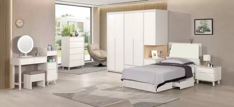 娜迪亞1.8尺床頭櫃 首頁 產品型錄 床組+衣櫃 娜迪亞床組 娜迪亞1.8尺床頭櫃 產品型號 : 2027-6 線上型錄 滿萬折千 價格 : 4100 規格選項 : 娜迪亞1.8尺床頭櫃 數量 : 加入詢價車 娜迪亞1.8尺床頭櫃 價格 : $ 4100 寬54 深40 高46 公分 材質:採用符合國際標準低甲醛防蛀木心板 塗裝:採用PU耐磨耐水塗裝 面板:採用美耐皿木心板材質,具有耐高溫.耐刮磨特性 抽屜:鋼珠滑軌 背板:美背處理 手把:採用J型封邊技術.美觀.防潮.耐用