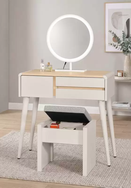 艾瑞爾2.7尺化妝台含椅 首頁 產品型錄 床組+衣櫃 艾瑞爾床組+衣櫃 艾瑞爾2.7尺化妝台含椅 產品型號 : 2040-1 線上型錄 滿萬折千 價格 : 11600 規格選項 : 艾瑞爾2.7尺化妝台含椅 數量 : 加入詢價車 艾瑞爾2.7尺化妝台含椅 價格 : $ 11600 寬80 深40 高133 公分 材質:採用台灣製造A級環保木心板 桌面:圓弧轉角採用紐西蘭A級松木噴漆導角 表面:採用PVC壓皮革紋 專利技術耐磨浮雕木紋,觸感猶如實木 塗裝:採用PU耐磨耐水塗裝 抽屜:採用三節式鋼珠滑軌 背板:美背處理 手把:斜邊無把手設計 化妝台:鏡框採用LED觸控式三段亮燈模式 化妝椅:可掀開置物