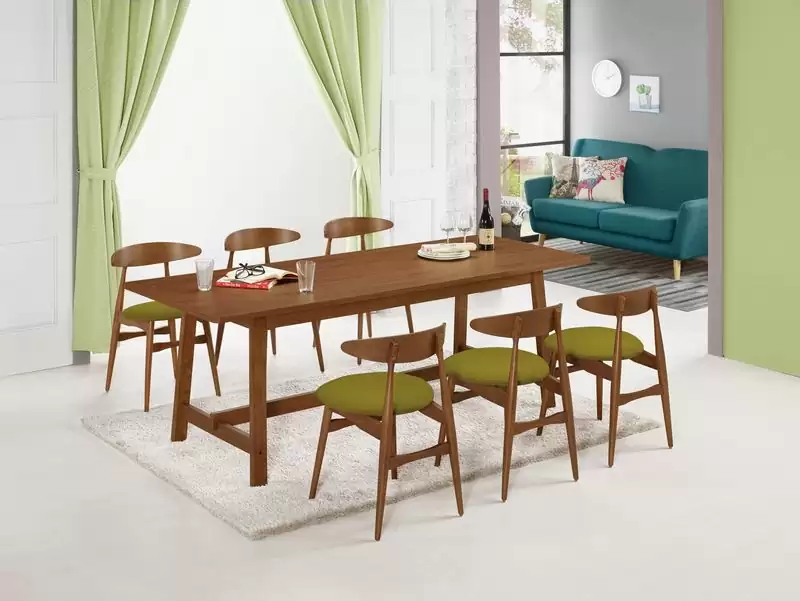 艾布納7.4尺胡桃餐桌 首頁 產品型錄 餐桌+餐椅 深色餐桌 艾布納7.4尺胡桃餐桌 產品型號 : 1765-2 線上型錄 滿萬折千 價格 : 12400 規格選項 : 艾布納7.4尺胡桃餐桌 數量 : 加入詢價車 艾布納7.4尺胡桃餐桌 價格 : $ 12400 寬220 深80 高74 公分 材質:高級MDF全包式材質貼胡桃實木皮 塗裝:採用優麗坦耐磨耐水塗裝 腳架:橡膠木實木 圖片餐椅https://www.chunglong.com/product/734